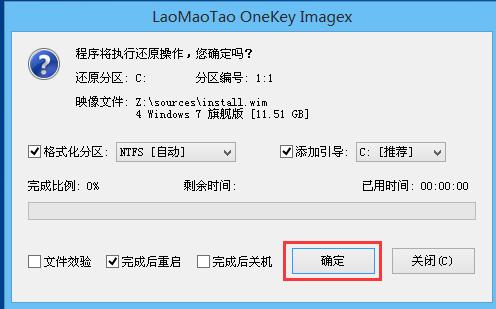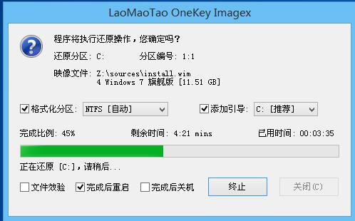 3、在提示框中点击“断定”,随后就可以看到还原过程,如图所示: