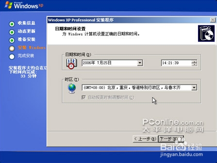 接下来要进行设置的是系统的日期以及时间(如图7所示)。当然,如果是在中国应用的话,那就直接点“下一步”就可以了。