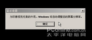 在安装完成后,Windows XP会主动调剂屏幕的分辨率(如图1所示)。