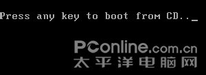 在BIOS将CD-ROM设置为第一启动项之后,重启电脑之后就会创造如图2所示的“boot fromCD”提示符。这个时候按任意键即可从光驱启动系统。如果超时未按,盘算机将跳过图2所示过程,从BIOS指定的第二启动项目启动,按上图的话将从硬盘(HardDisk)启动。