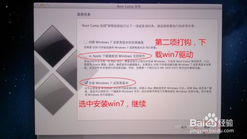 1.选第二项,从Apple下载最新的windows支撑软件,此为苹果电脑的win7驱动