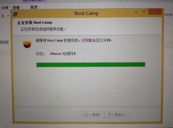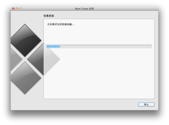 10、点击安装后,Boot Camp助理会开端分区,并在分区完成后主动重新启动电脑。
