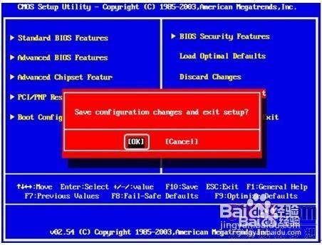 设定好了之后,我们还要保存bios设置,按键盘上面的F10键,就会涌现一个保存的确认对话。点击ok,系统会再次重启。