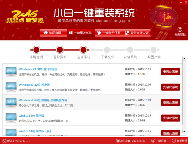 二、运行软件后,这里选择版本根据你云匹配来选择合适的版本。建议:2G以下内存的选择XP系统。