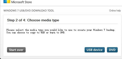 改用官方的Windows 7镜像后,则会进入第二步,在这里我们可以选择制作的安装盘的方法,我们可以选择U盘和DVD光盘两种介质,在这里我们选择USB devcie。