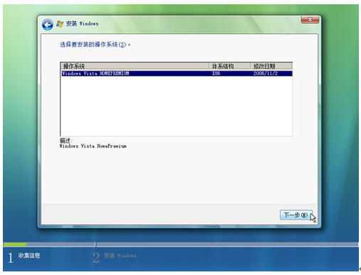 7、涌现如下图所示的选择系统安装分区界面,联想电脑出厂一般有两个硬盘分区(C盘和D盘),强烈建议仅对C盘(磁盘0分区1)进行格式化操作来重新安装系统。如果想对硬盘进行重新分区或新调换硬盘需要进行分区,请参考“四、应用VISTA系统恢复光盘对硬盘进行分区(重新分区)”。