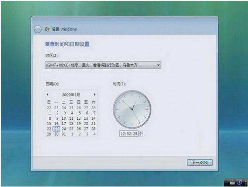14、涌现如下图所示的界面,调剂正确的时区、日期和时间,然后点击"下一步";