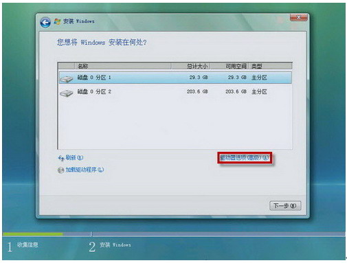 1、在下图所示界面应用鼠标点击红色方框的"驱动器选项(高级)"按钮;