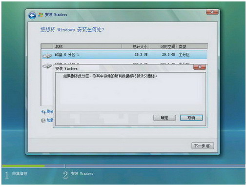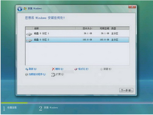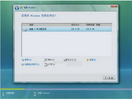 10、下图所示为格式化过火区后的状态,点击"下一步"按钮持续系统的安装;