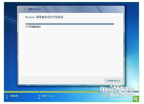 7、注意:当重启的时候,U盘立刻拔出,或者将重启模式调为硬盘启动(即改回最初模式),否则会再次经历安装过程!