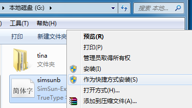 然后你再找到你要添加的字体文件,鼠标右键选择“作为快捷方法安装”,这样就可以进行安装了,可以说这个方法也不难吧!