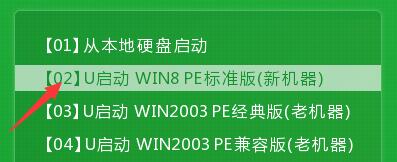 1、将u盘启动盘插入电脑usb接口,重启电脑后按开机启动快捷键进入u启动主菜单界面,在显示的菜单中选择【02】u启动win8pe标准版(新机器)回车,如图: