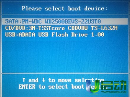 1、把制作好的u盘启动盘插在电脑usb接口上(建议插在usb2.0端口),然后重启电脑,在开机时不断按F9快捷键进入快速领导窗口,选择u盘启动(USB HDD/USB/u盘名),按回车键确认选择履行,如下图所示: