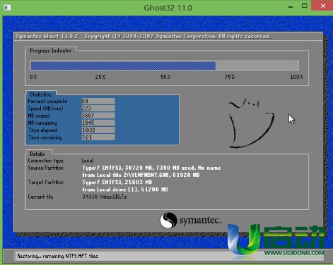 4、然后耐心等候安装程序释放完毕并重启电脑即可,如下图所示: