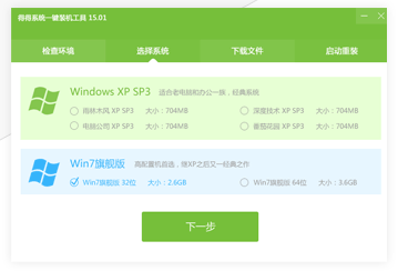 2、选择系统,根据您的个人爱好以及电脑的配置选择需要电脑操作系统,然后点击“选择系统”,并选择所需的系统类型,一般情况下单核处理器选择XP,双核和四核选择win7,小于2G内存选择32位,反之选择64位!