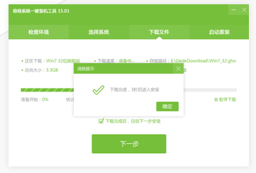 3、当选择好系统以后,通过点击“下一步”后就可以进入了系统镜像下载窗口,这时候大家只需要等候下载完成绩可以了,得得老鸟Win10升级助手支撑断点下载,也可以暂停下载。系统下载完成后会将主动重启电脑安装系统,无需手动操作。