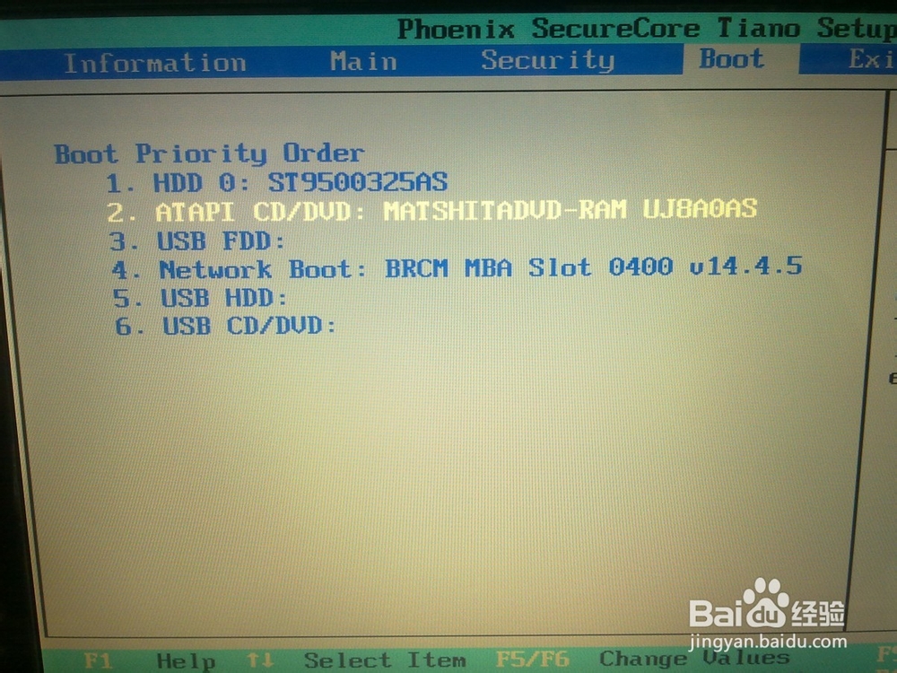 然后按F6网上提,直到光驱为第一启动项(如下图3.3)