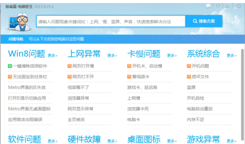 用户在应用电脑的过程中可能会遇到:上网异常,比如,Metro界面的IE失效等;游戏异常,比如,玩游戏没声音、卡顿等;卡慢问题,比如,上网慢、游戏卡逝世等问题。现在,小编就针对这些问题来和大家分享处理方法:通过第三方软件来修复。下面,一起来看此问题的具体处理方法介绍吧。