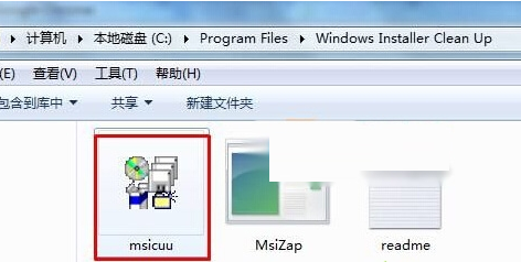 4、打开“我的电脑”,然后依次展开“C:\Program Files\Windows Installer Clean Up”,双击打开“msicuu”;
