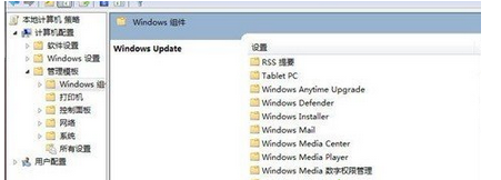 2、在组策略编辑器窗口中,咱们在左侧菜单中定位找到管理模板-Windows组件,然后在右侧的窗口中找到文件windows update并双击该文件;