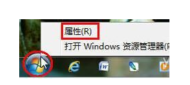 1、先用鼠标右键点击Win7的圆形“开端”按钮,然后选择“属性”,打开“自定义开端菜单”的设置面板。