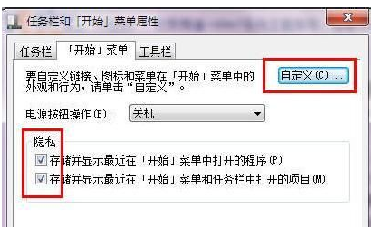 2、在“开端菜单”页卡中的“隐私”设置里,我们可以选择是否储存最近打开过的程序和项目,这两个功效默认为勾选。补充:如果有些朋友不想显示这些,可以在这里取消相干的勾选设置。如果不想显示个别的程序和项目,我们也可以直接从右键菜单中选择“从列表中删除”。