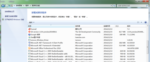 1、先到把持面板-->程序-->卸载程序,看看里面有没有.net framework 组件