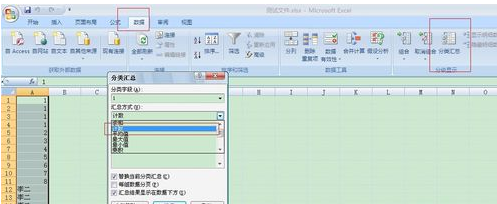 2、排序后,选中A列,选择”数据“-”分类汇总“-”汇总方法“-”计数“,操作如下图所示。