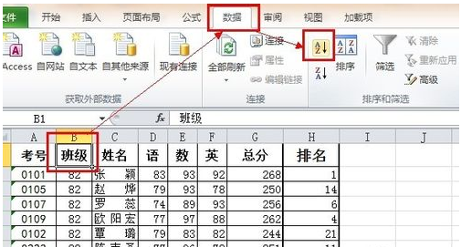一,选中需要分类汇总的列:选择菜单的“数据”,单击升序排序。