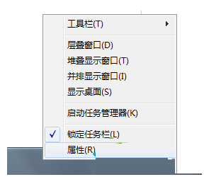 1、右击任务栏,打开属性;