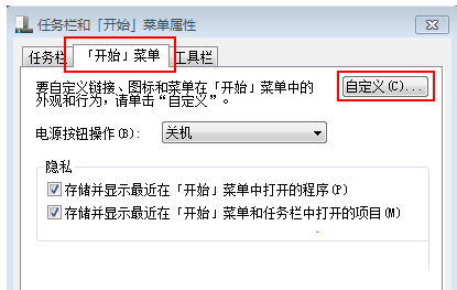 2、切换到“[开端]菜单”选项卡,点击“自定义”按钮;