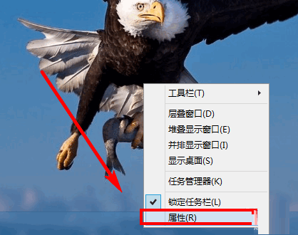 1、在桌面的任务栏中右键单击,选择“属性”,如下图所示: