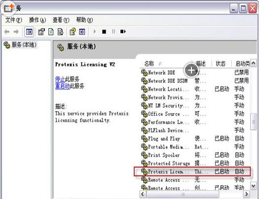 1、右击【我的电脑】→【管理】→【服务】→找到【Protexis Licensing V2】,或【把持面板】→【性能和掩护】→【管理工具】→【服务】→找到【Protexis Licensing V2】,