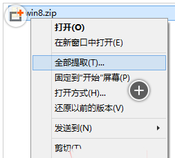 在zip格式的压缩文件上点击右键,选择“全部提取”。如图: