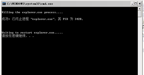 echo Waiting to restart explorer.exe.....pausestart explorer.exe