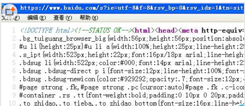 1、打开百度首页,查看源代码。