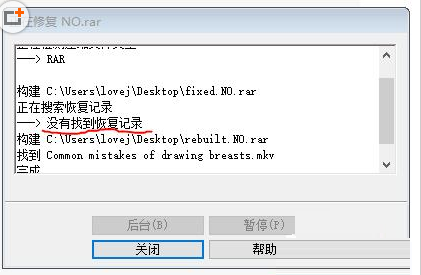 3、如果在修复过程中没有找到‘恢复记载’,软件会尝试重建一份雷同的RAR压缩包文件,重建的压缩包会以“rebuilt”开头,你可以试着解压这个rebuilt开头的压缩包看看是否可行。