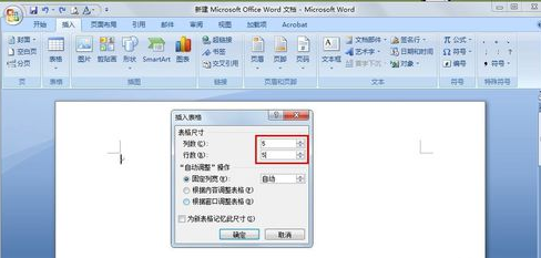 2、在插入表格的对话框中输入几行几列,然后断定就OK了。