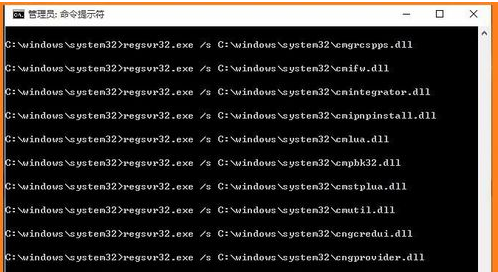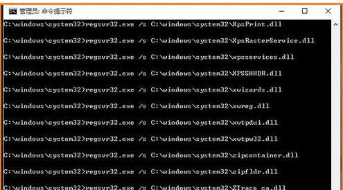 4、我们按下回车键以后,开端注册系统的.dll文件,窗口中的文件会不断的滚动;