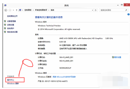 2、点击打开操作中心