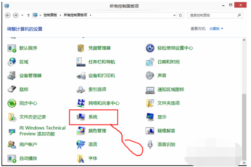 1、打开开端菜单---把持面板--切换到大图标模式--找到系统