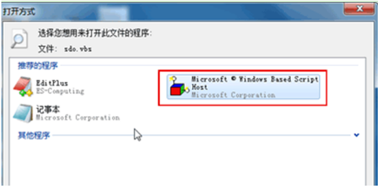 3、检查注册表HKEY_CLASSES_ROOT\VBSFile\Shell\Open\Command默认值,应当是"%SystemRoot%\System32\WScript.exe" "%1" %*,那么请手动更改 .vbs 文件的打开方法,将其改为C:\windows\System32\文件下的 WScript.exe 程序;