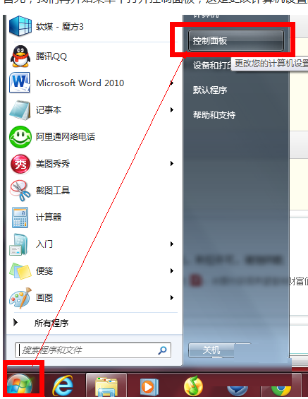 1、首先,我们再开端菜单中打开把持面板,这是更改盘算机设置的处所。