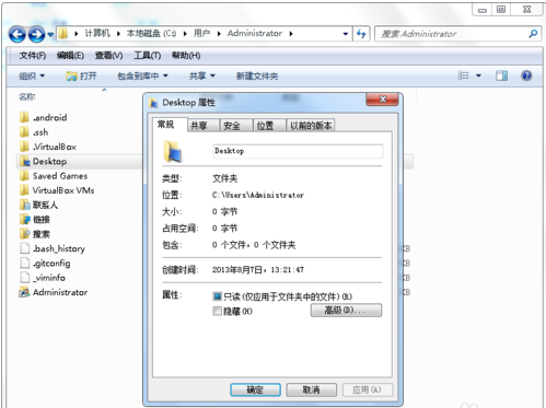 1、首先打开下面的目录:C:\Users\Administrator,然后选择Desktop,在上面点击右键,之后在弹出右键菜单中选择“属性”