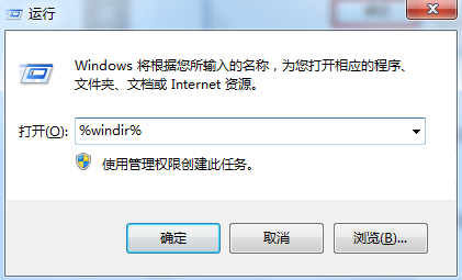 2、同时按住键盘上的“Win+R”键弹出“运行”窗口,在“打开”一栏输入%windir%然后回车。