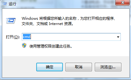 1.在“开端→运行”中输入CMD,打开“命令提示符”窗口。