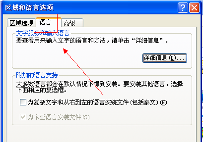 2、双击打开区域和语言选项窗口之后,切换到语言选项卡,如图所示: