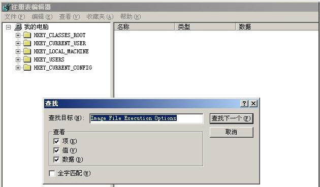 3、按Ctrl+F,打开查找,输入“Image File Execution Options”,然后点:查找下一个