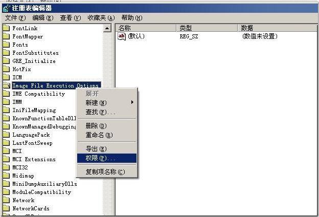 4、找到后,右键点“Image File Execution Options”,选择倒数第二项“权限”,将“system”用户组选择“完整把持”,然后点添加,输入你当前的系统用户名,然后点断定,并给予完整把持的权限。