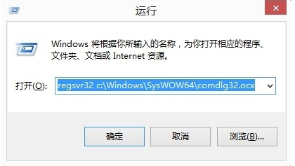 对于64位的系统。在“运行”中直接输入“regsvr32 c:\Windows\SysWOW64\comdlg32.ocx”